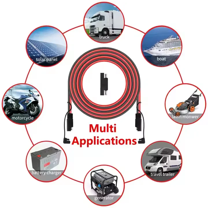 Widely used: For expansion and maintenance of most batteries and chargers with SAE quick release connectors. Widely used in a variety of batteries, solar panels, motorcycles, lawn mowers, ATV, RV, traction motors, tractors and other equipment that requires SAE plugs