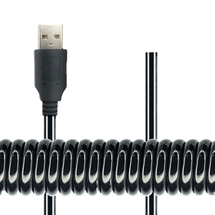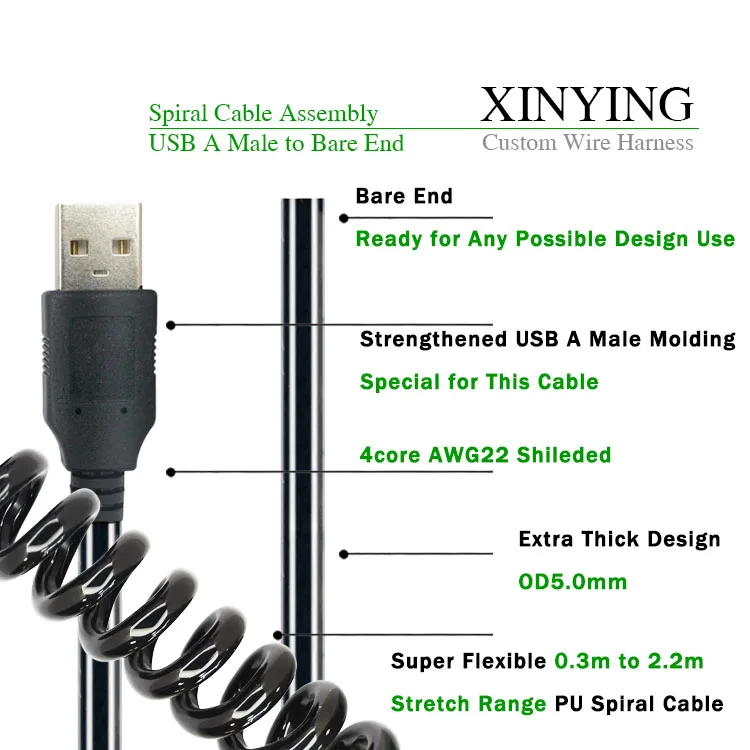 Custom USB Spiral Cable 4-Core AWG22 Shielded PU insulated Extra Thick OD 5.0mm Super Flexible