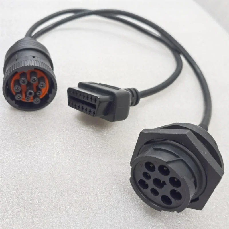 Dual Connectivity J1939 9-Pin Splitter Cable Female to Female with Nut & OBD2 Male Output Automotive Wiring Harness