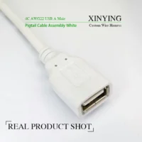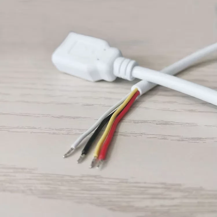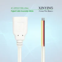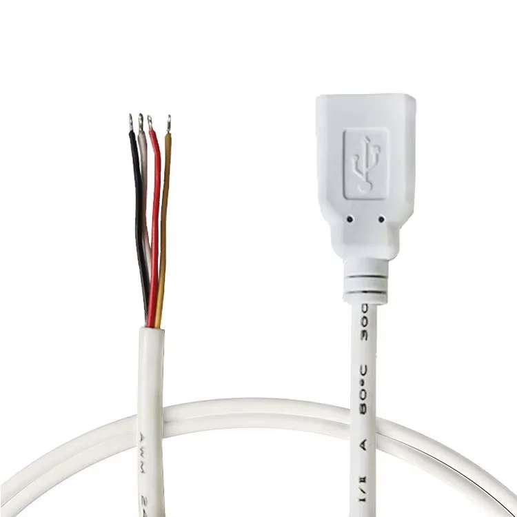 AWG22 USB 2.0 A Female Pigtail Cable White 4 Core Stripped Tinned End