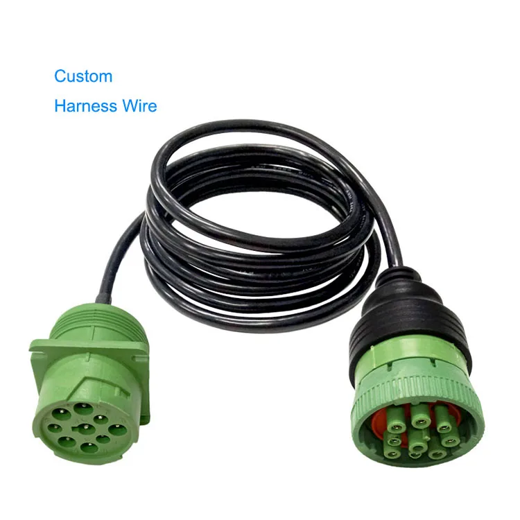 OEM ODM Custom CAN J1939 9-Pin Green Type 2 Electronic Logging Device Diagnostic Extension Cable Wiring Harness