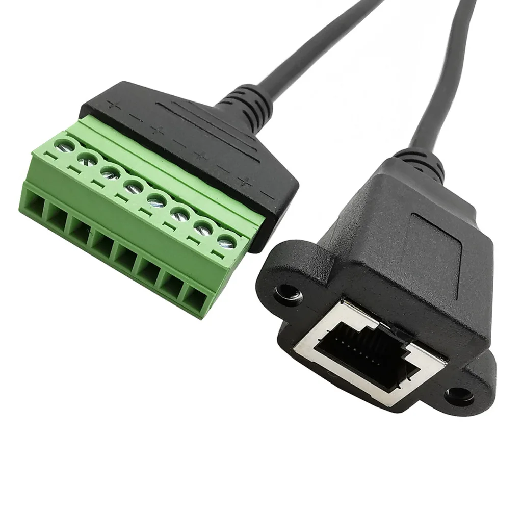 RJ45 Female Panel Mount Adapter Cable to 8 Pin AV Screw