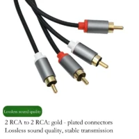 2-Male to 2-Male RCA Audio CableSuitable for TVs, subwoofers,power amplifiers, mixers, etc.